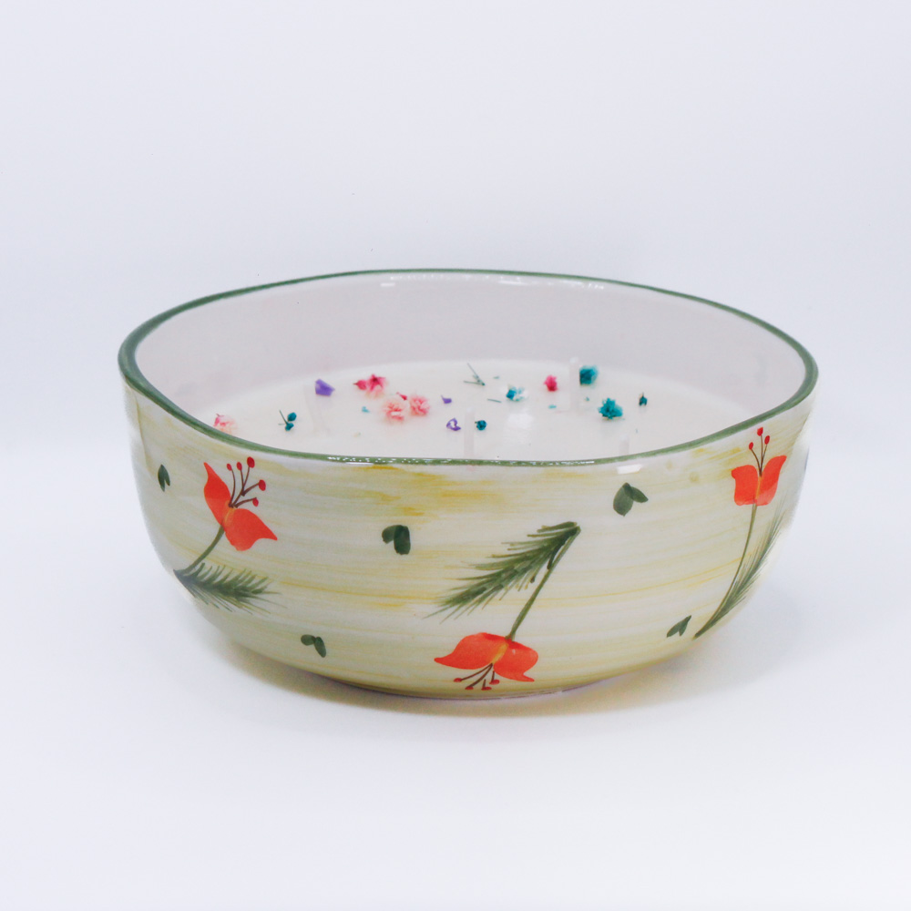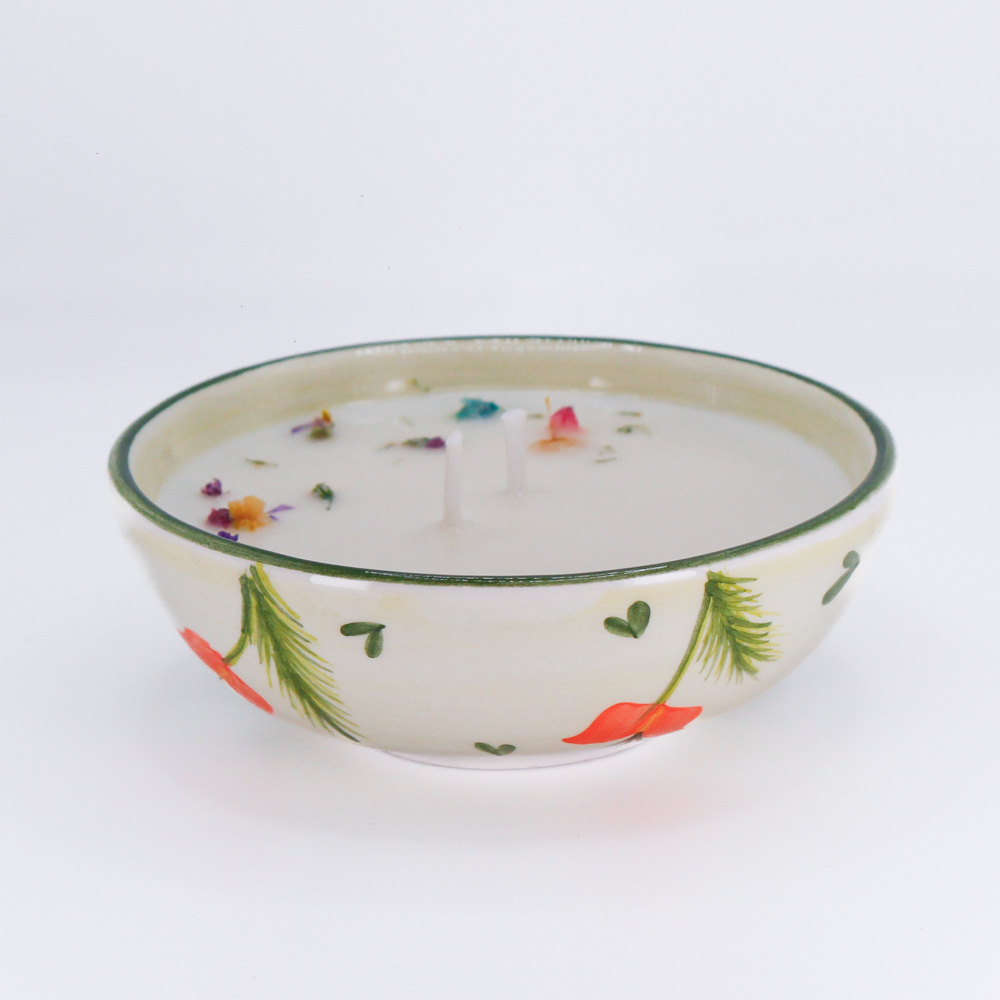Cada vela viene en una vasija artesanal de barro, pintada a