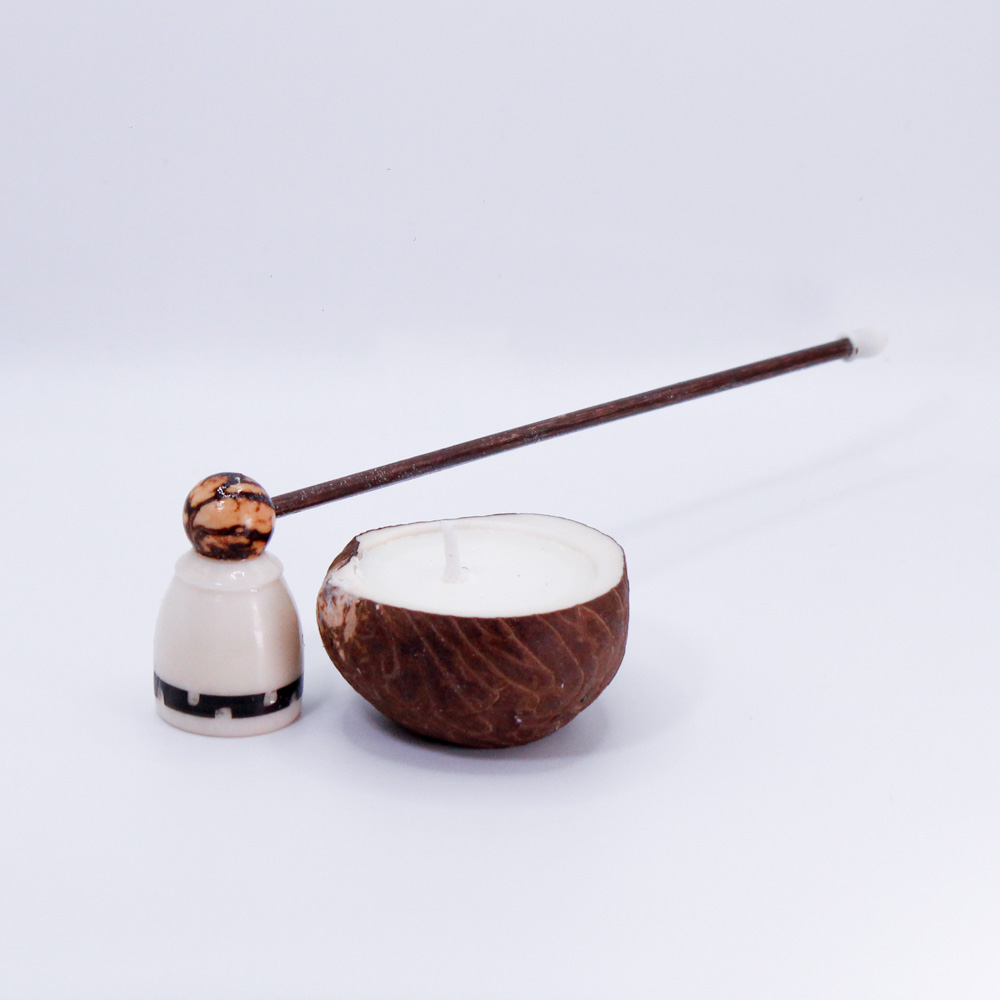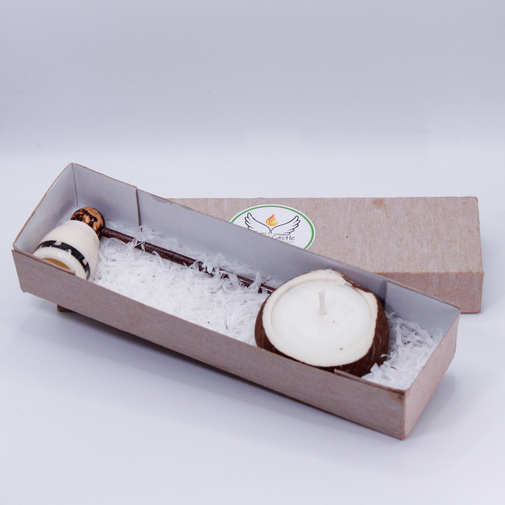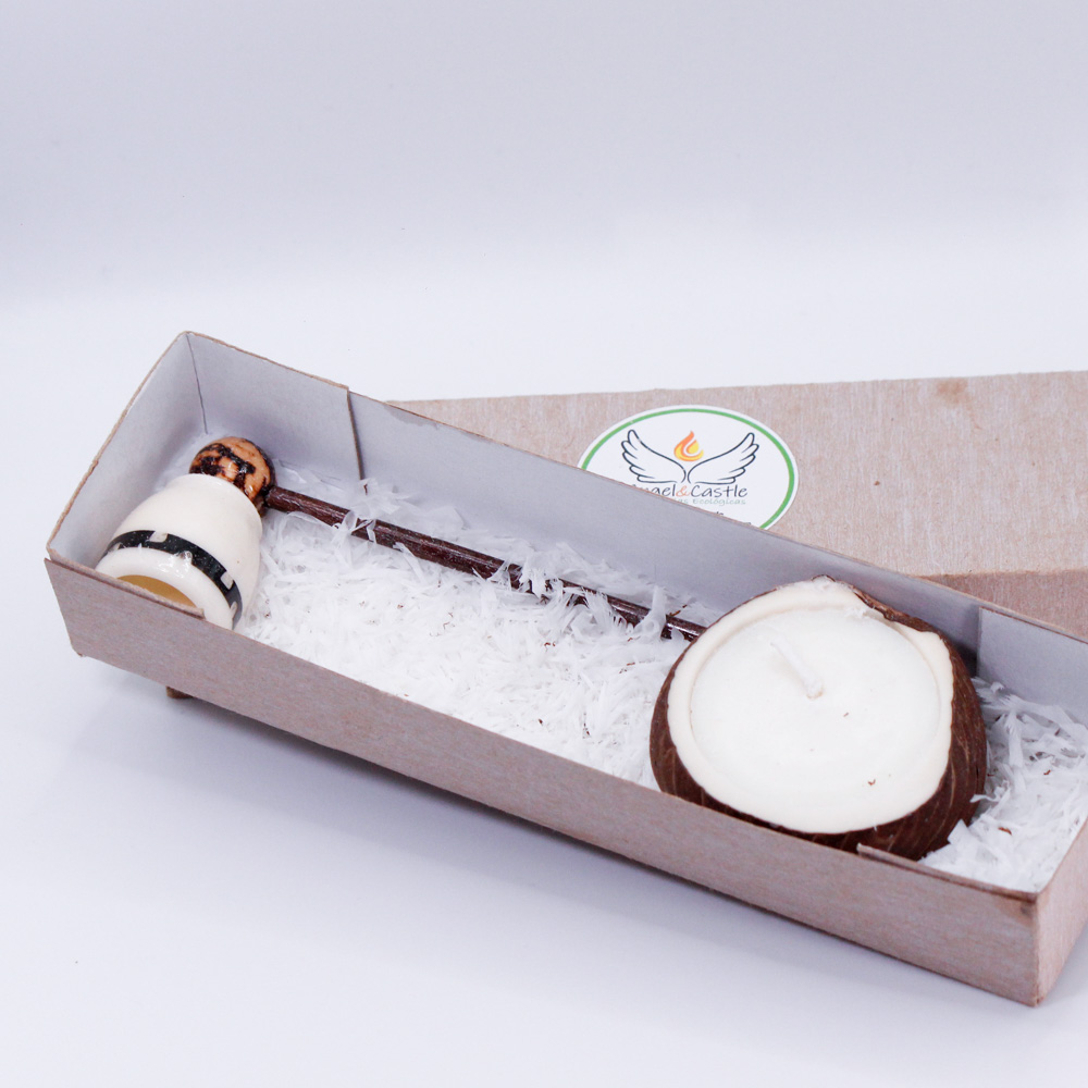 Mezcla mágica de mantequillas vegetales que al derretirse con el calor de la llama se convierte en un suave y calido aceite ideal para masajear e hidratar tu piel.