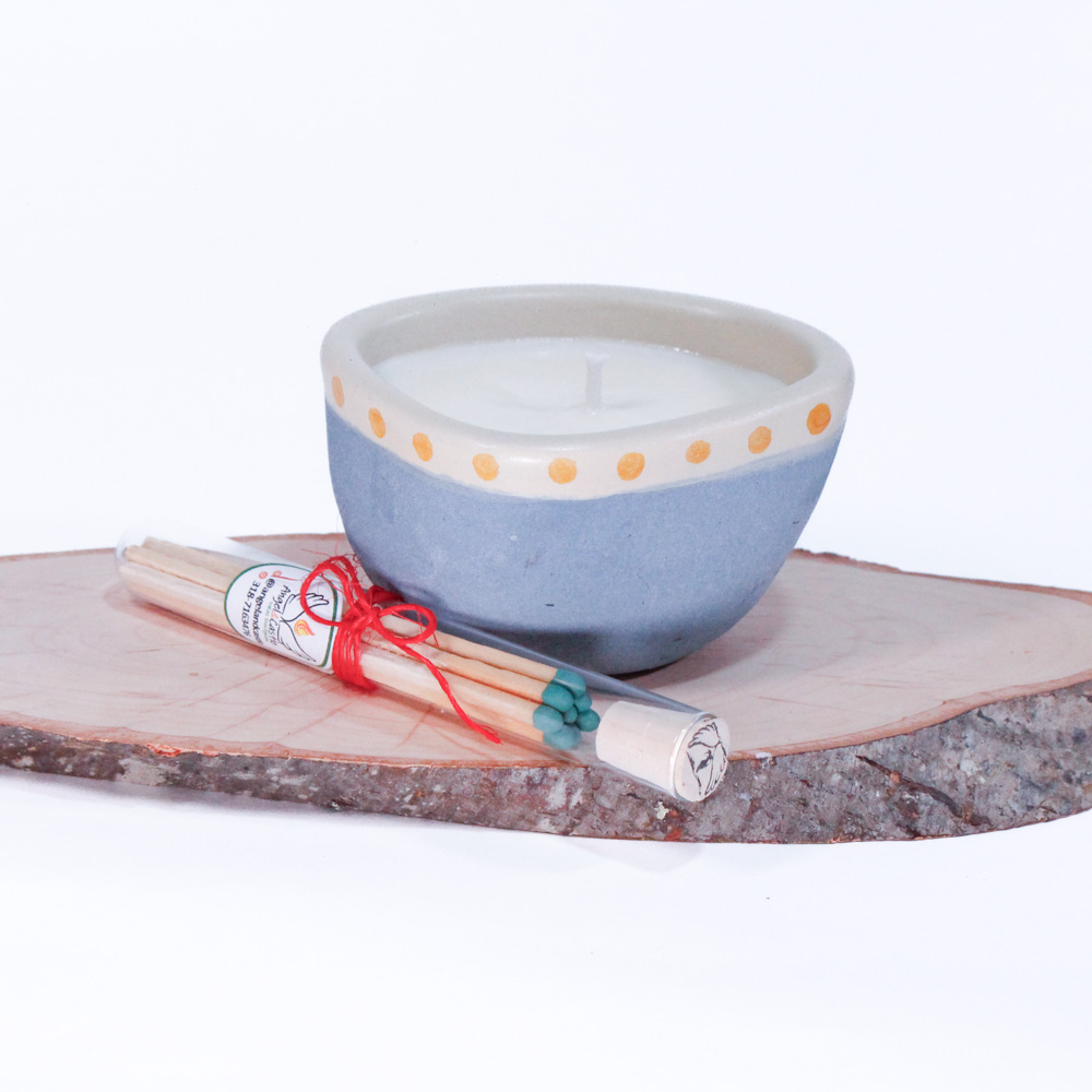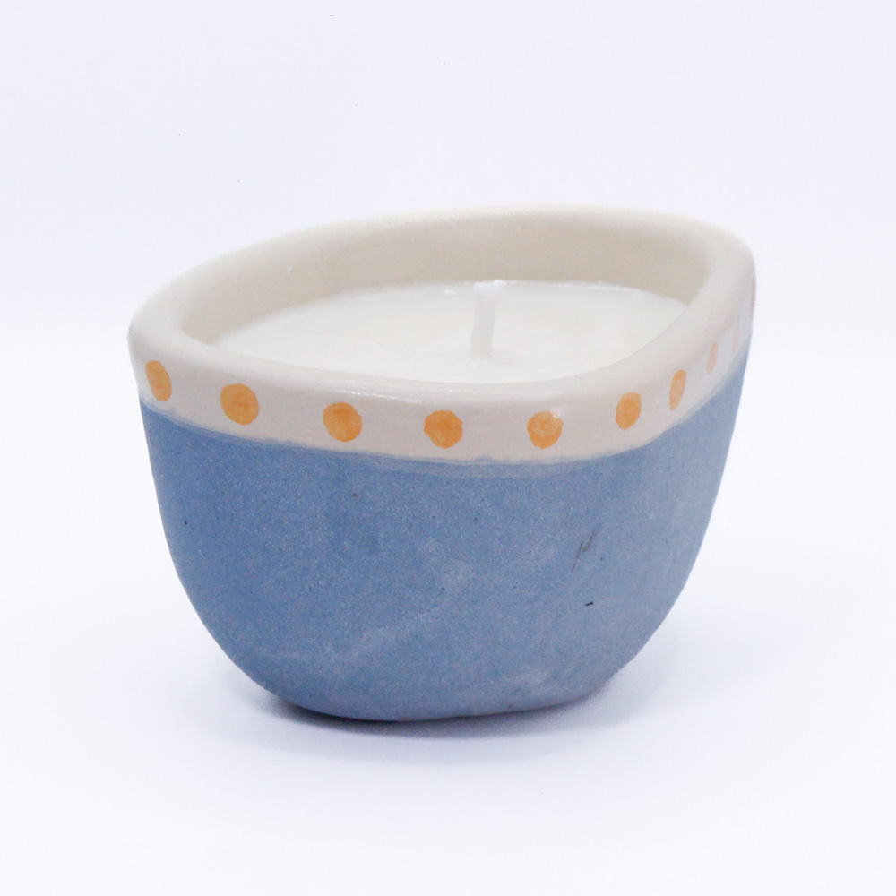 Nuestras velas aromáticas están hechas con ceras orgánicas de origen vegetal, libres de parafina y elaboradas con ingredientes amigables con tu cuerpo y el planeta. Cada vela viene en una vasija artesanal de barro, pintada a mano por artesanos colombianos, lo que convierte cada pieza en un objeto único, funcional y lleno de historia